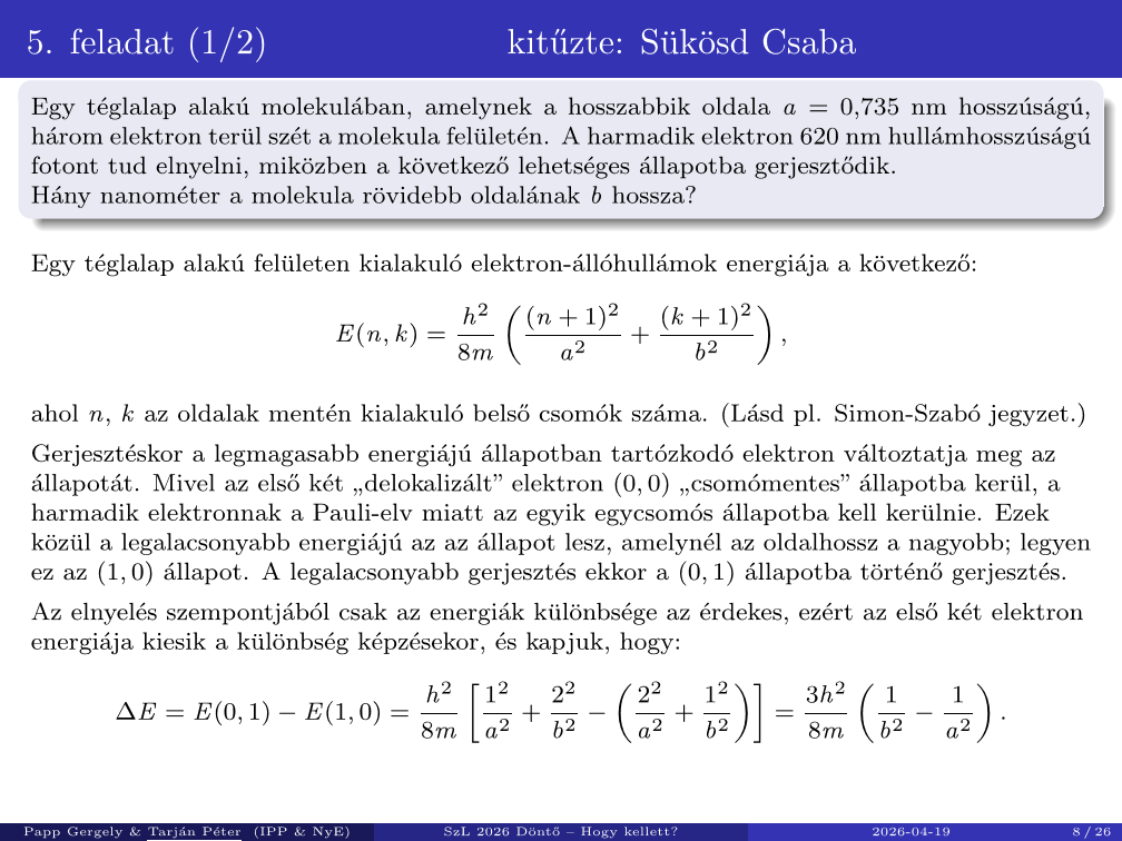 2026. évi döntő elméleti (számításos) feladatainak megoldása