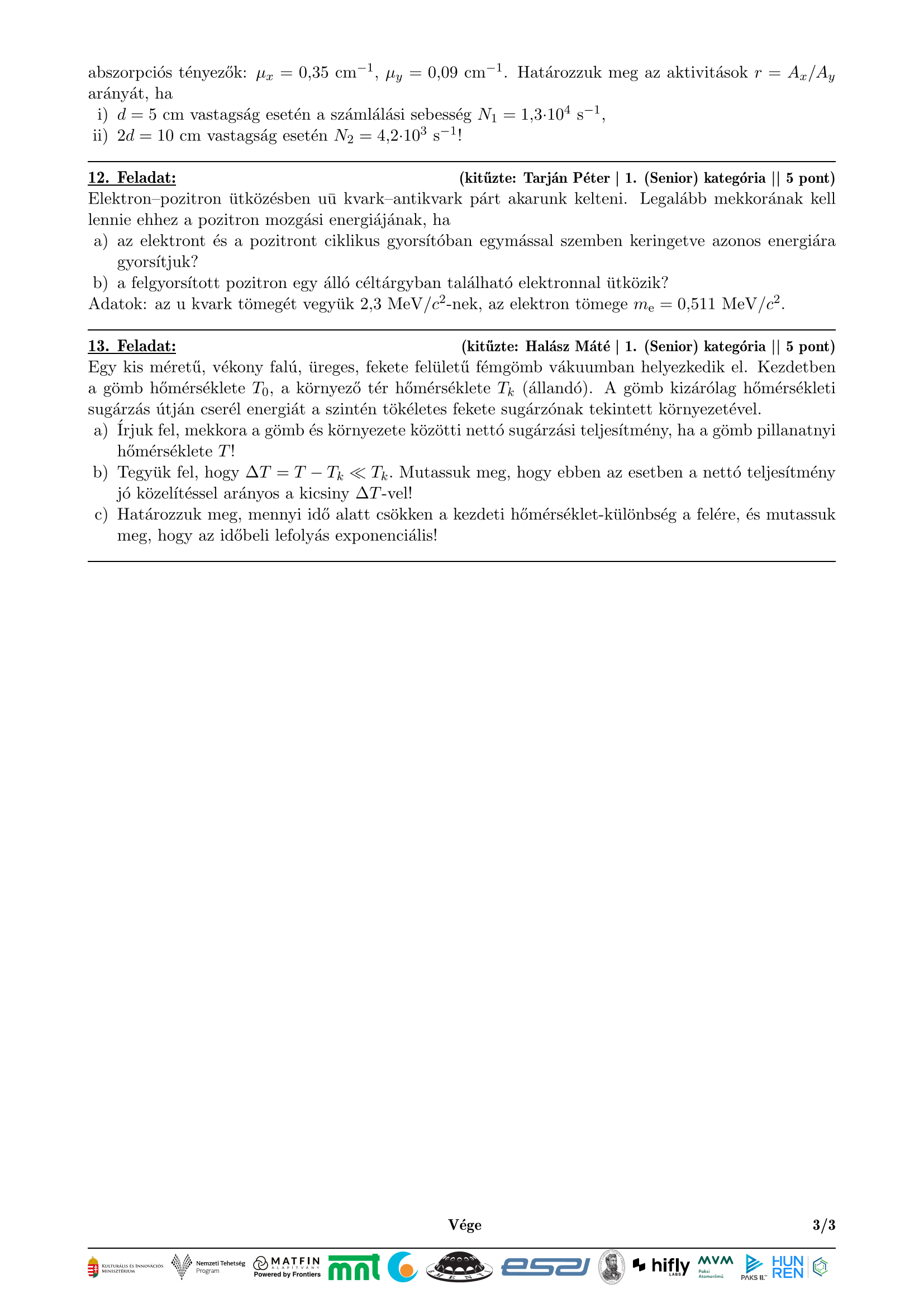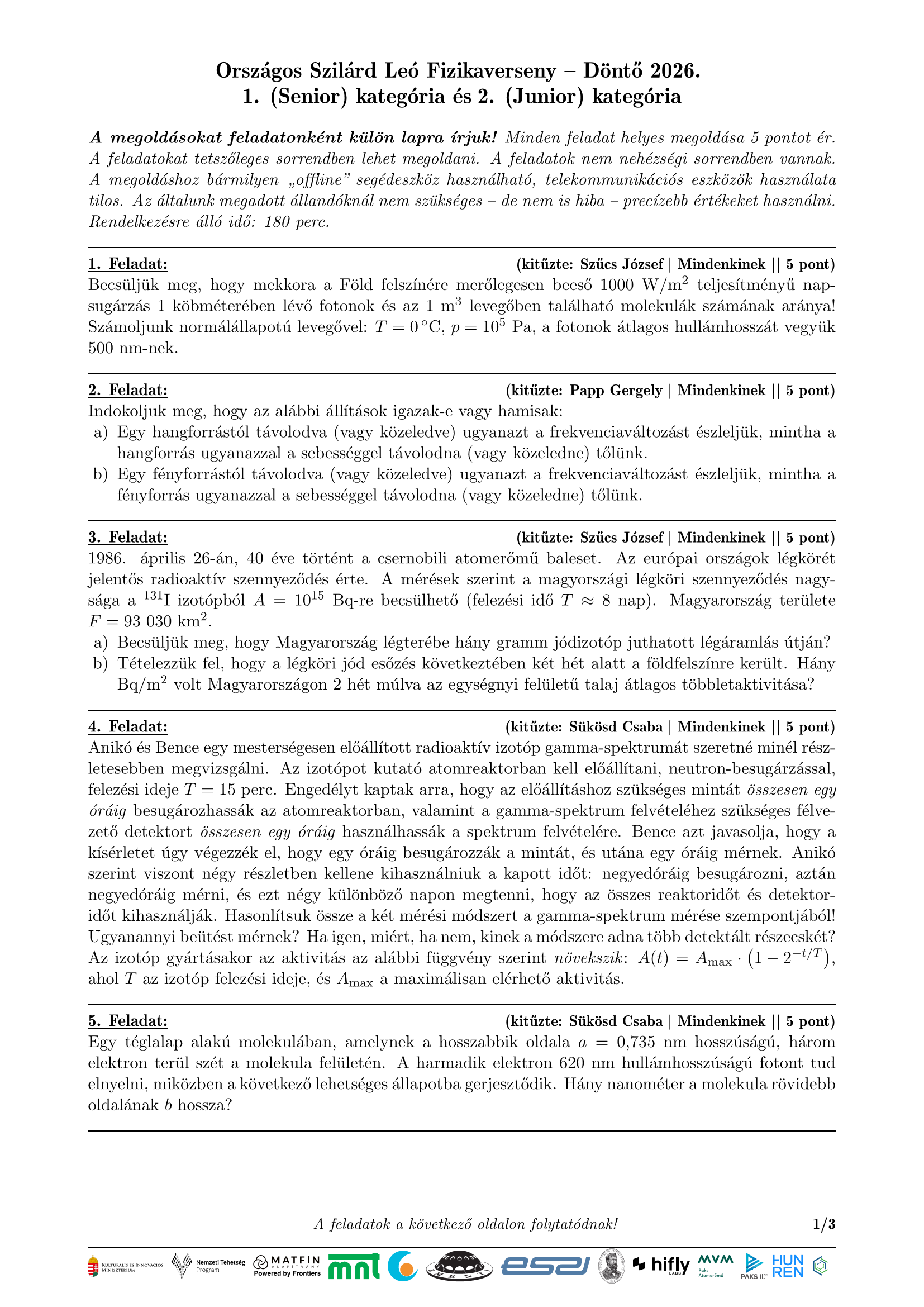 2026. évi döntő elméleti (számításos) feladatai
