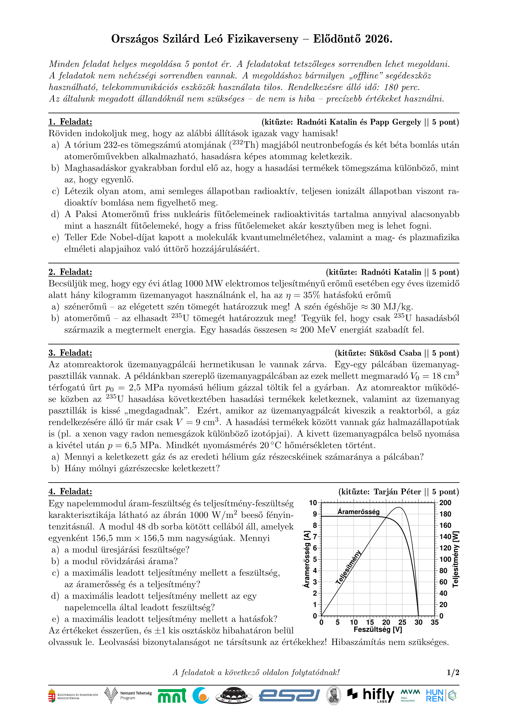 2026. évi 29. Verseny elődöntő elméleti feladatai